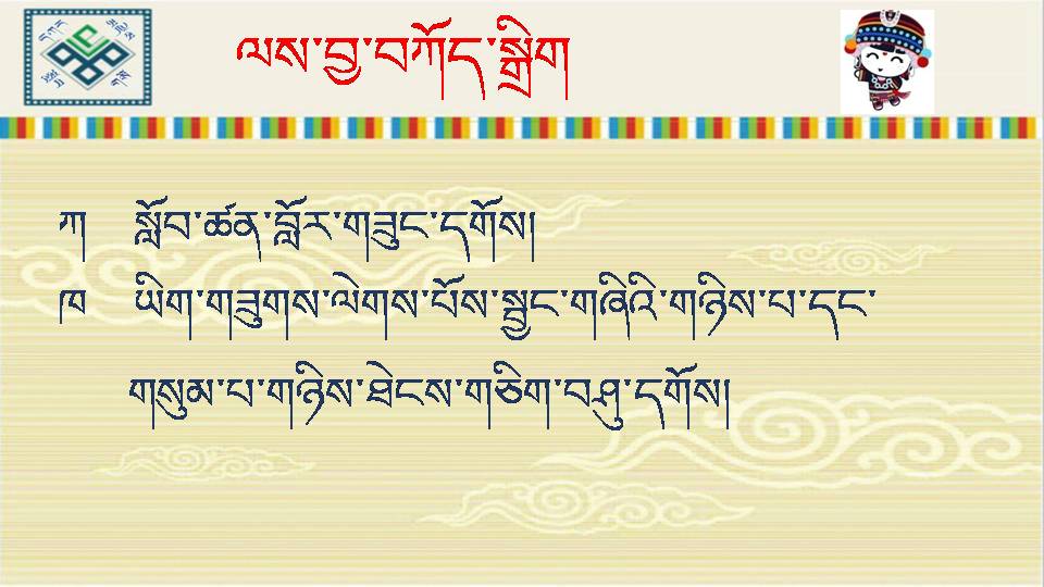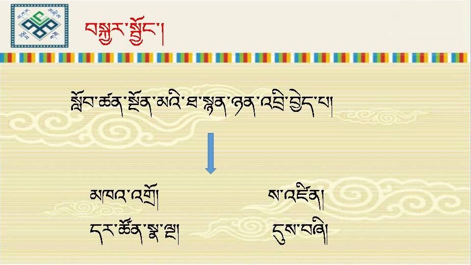 ལེགབས་བཤད་ཚན་པ་བཞི་ཞེས་པའི་སློབ་ཁྲིད་ཀྱི་གྲ་སྒྲིག ལོ་རིམ་དྲུག་པ།