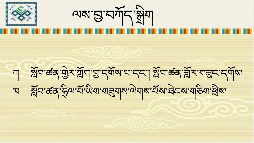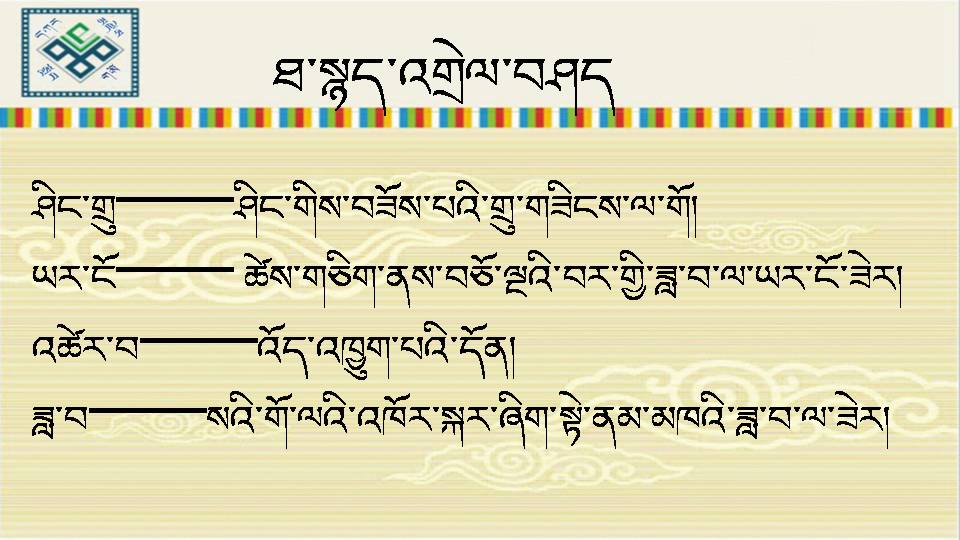 ལེགབས་བཤད་ཚན་པ་བཞི་ཞེས་པའི་སློབ་ཁྲིད་ཀྱི་གྲ་སྒྲིག ལོ་རིམ་དྲུག་པ།